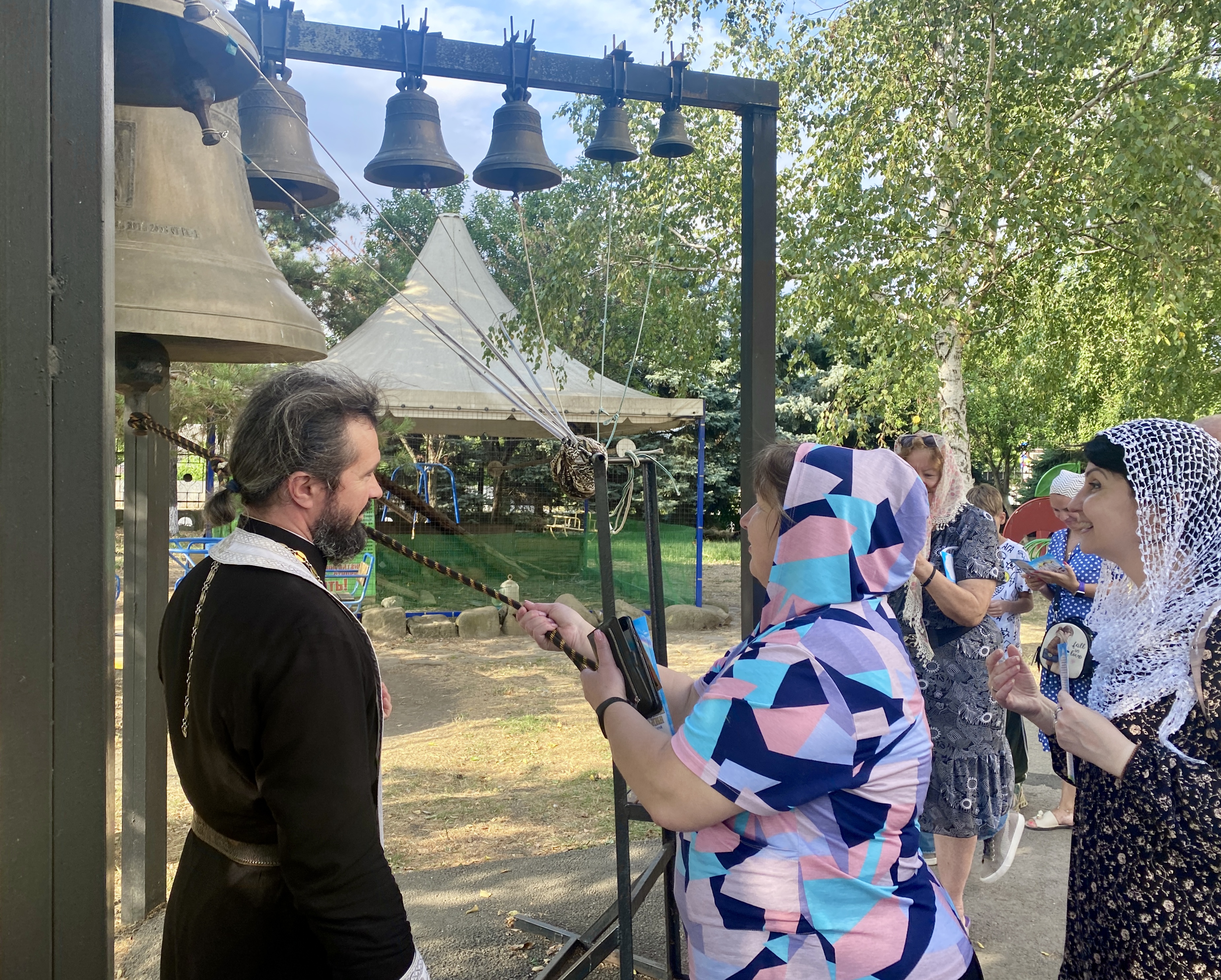 В завершение встречи отец Павел позвонил в колокола, после чего гостям была предоставлена возможность самостоятельно ударить в самый большой колокол звонницы.
