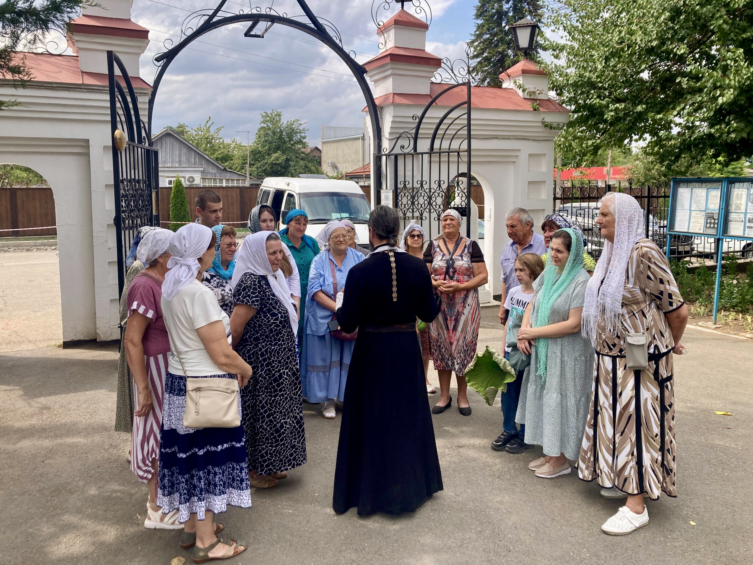 Экскурсию для прихожан храма Покрова Пресвятой Богородицы и жителей села Благодатное Петровского района Ставропольского края, приехавших вместе со священником иереем Родионом Ивановым, провёл настоятель храма, иерей Павел Максимец.
