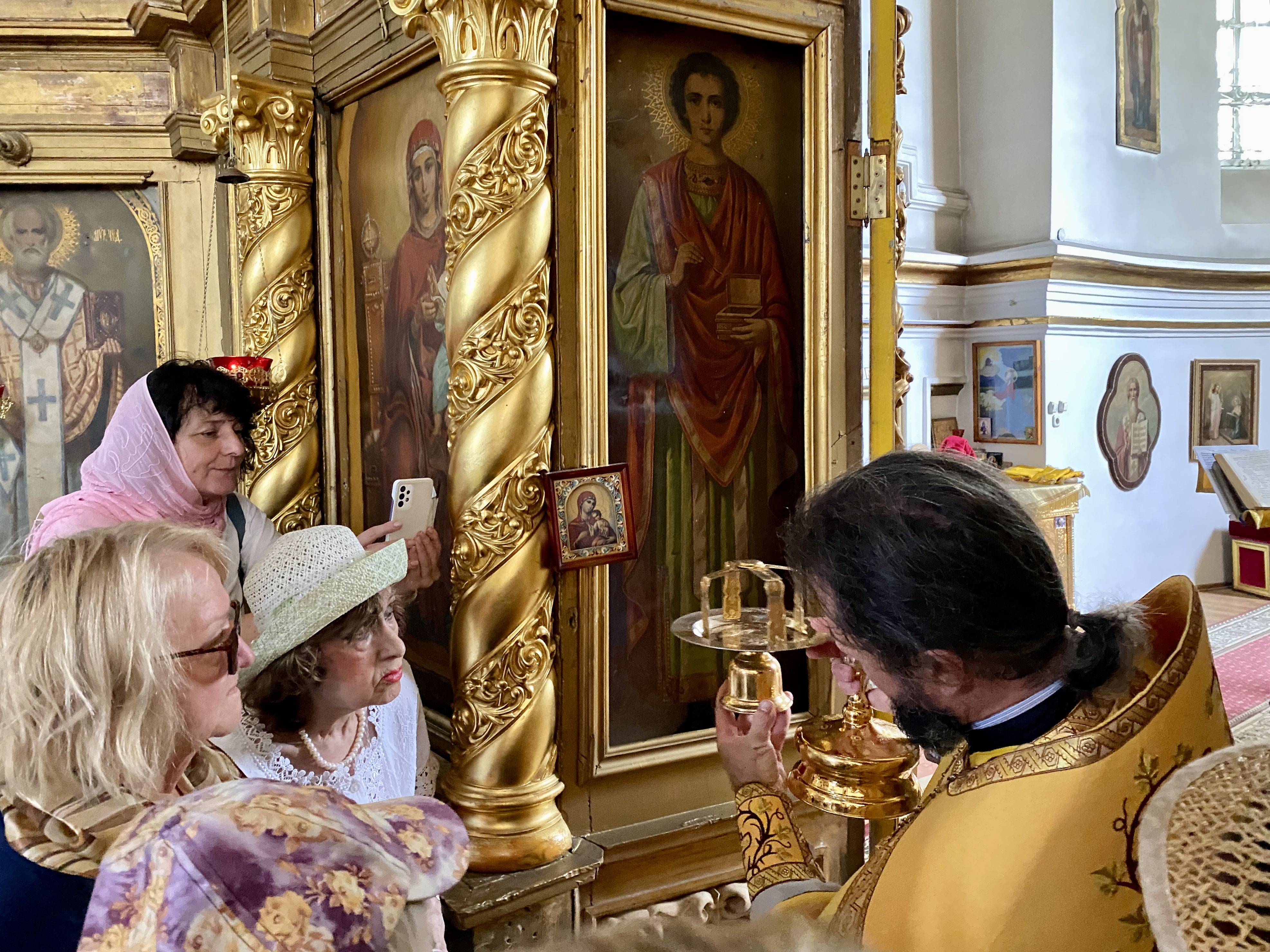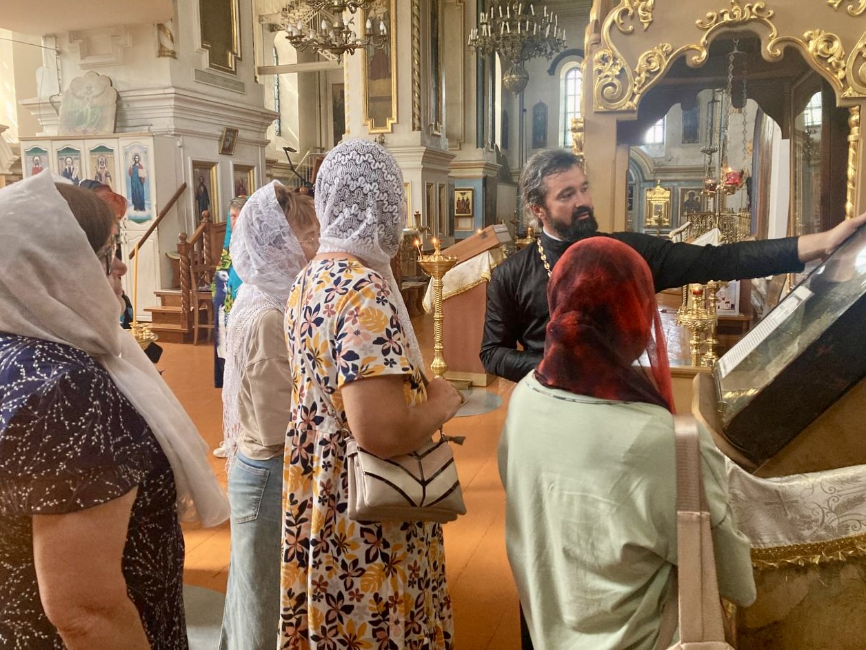 Отец Игорь подробно рассказал об истории храма, а также о значимых святынях и иконах. Экскурсия позволила паломникам глубже понять духовное значение этого места и прикоснуться к его историческим традициям.