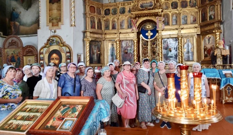 Вторая группа паломников приехала из города Армавира. Отец Павел также провёл для них экскурсию, не упустив возможности поделиться историей храма и рассказать о его уникальных иконах. Батюшка показал присутствующим святое Евангелие, которое обычно располагается на Престоле в алтаре, объяснил символику семисвечника и значение семи лампад, а также показал сосуды для Евхаристии и совершения таинства Крещения, что вызвало большой интерес.
