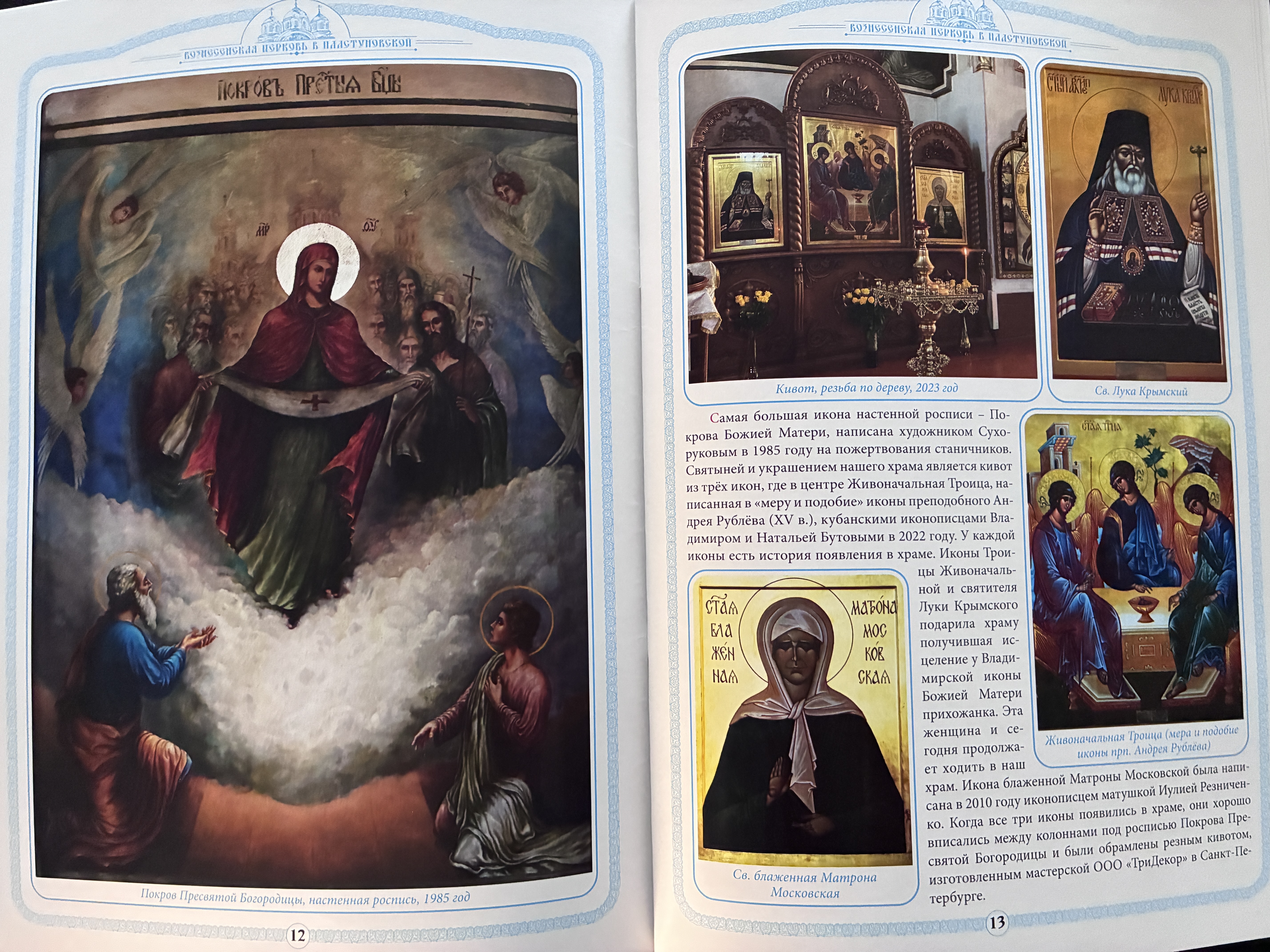 Мы тщательно доработали издание: добавили раздел «Путеводитель по святыням храма», включили драгоценные воспоминания станичников — живые свидетельства о вере, традициях и событиях, которые нас объединяют, а также обновили дизайн книги.