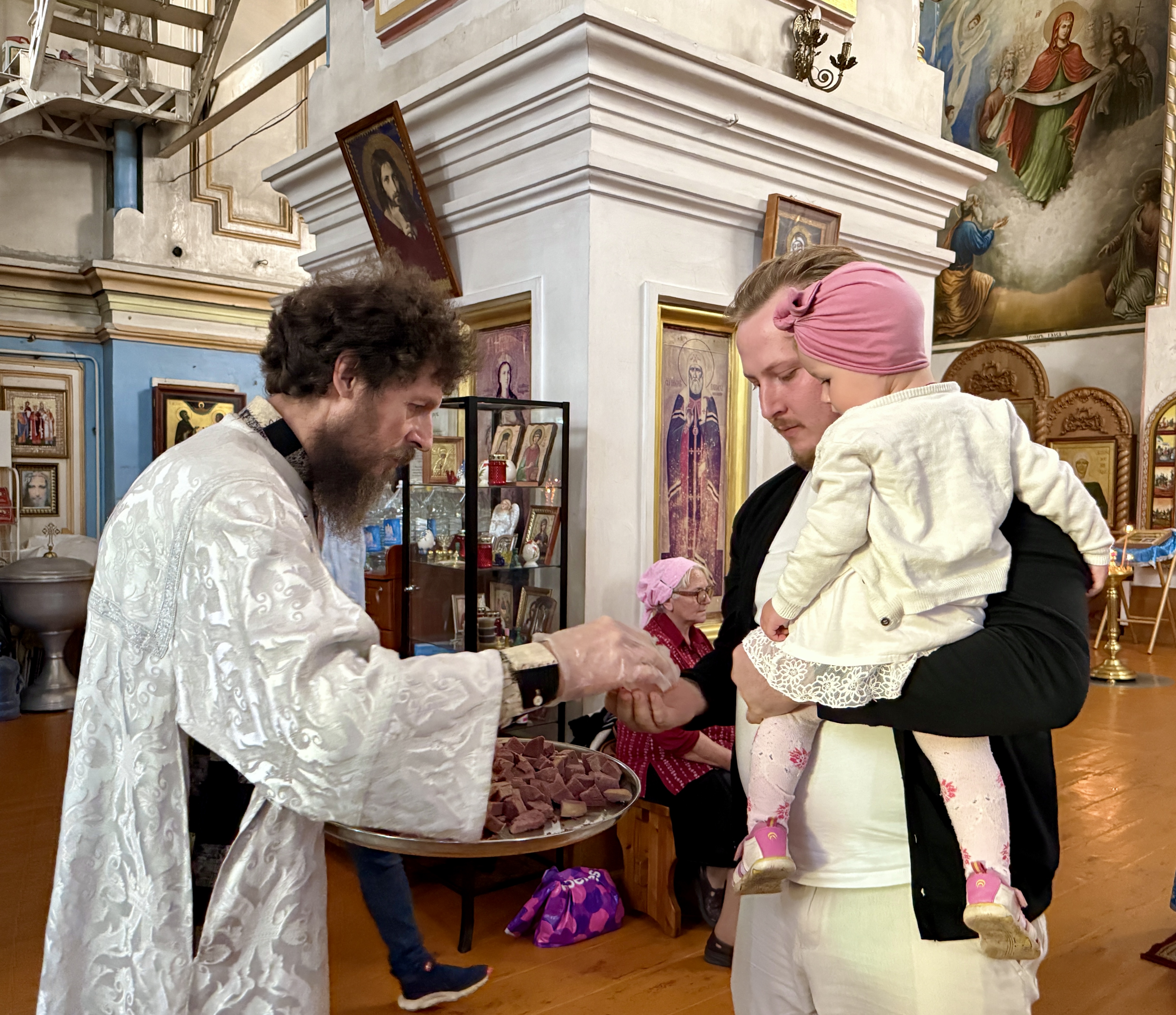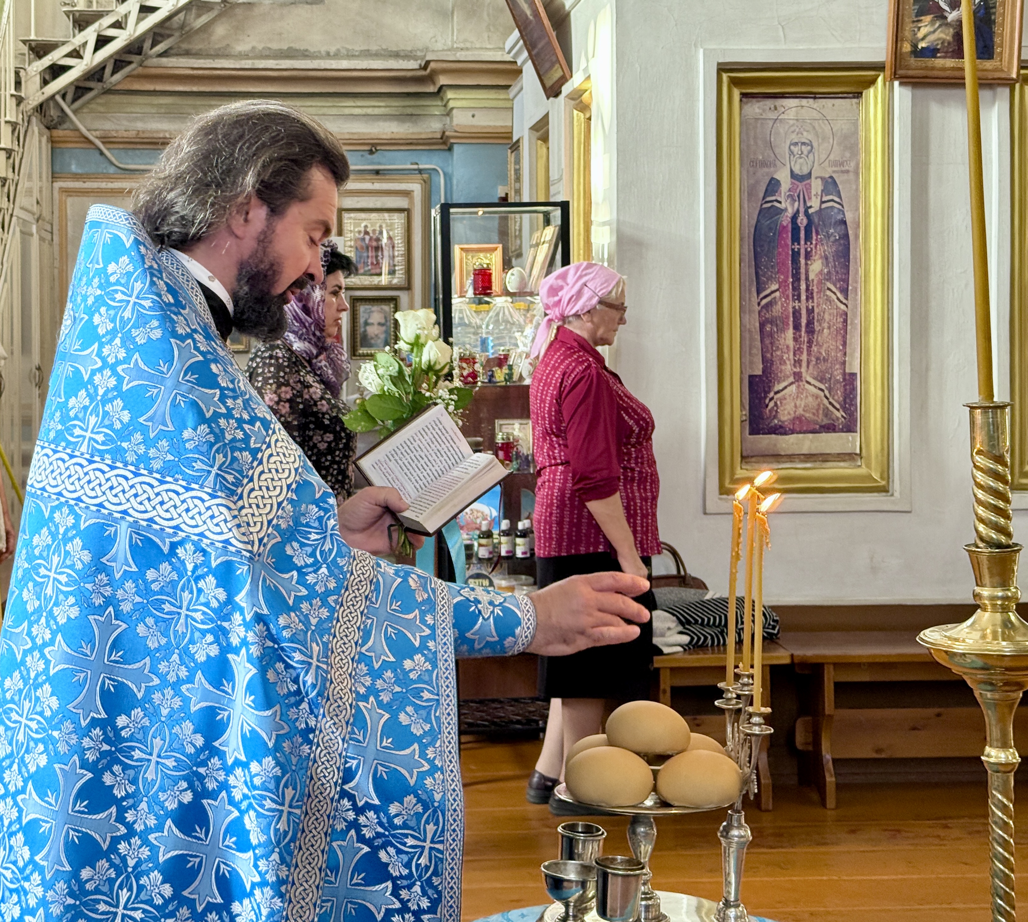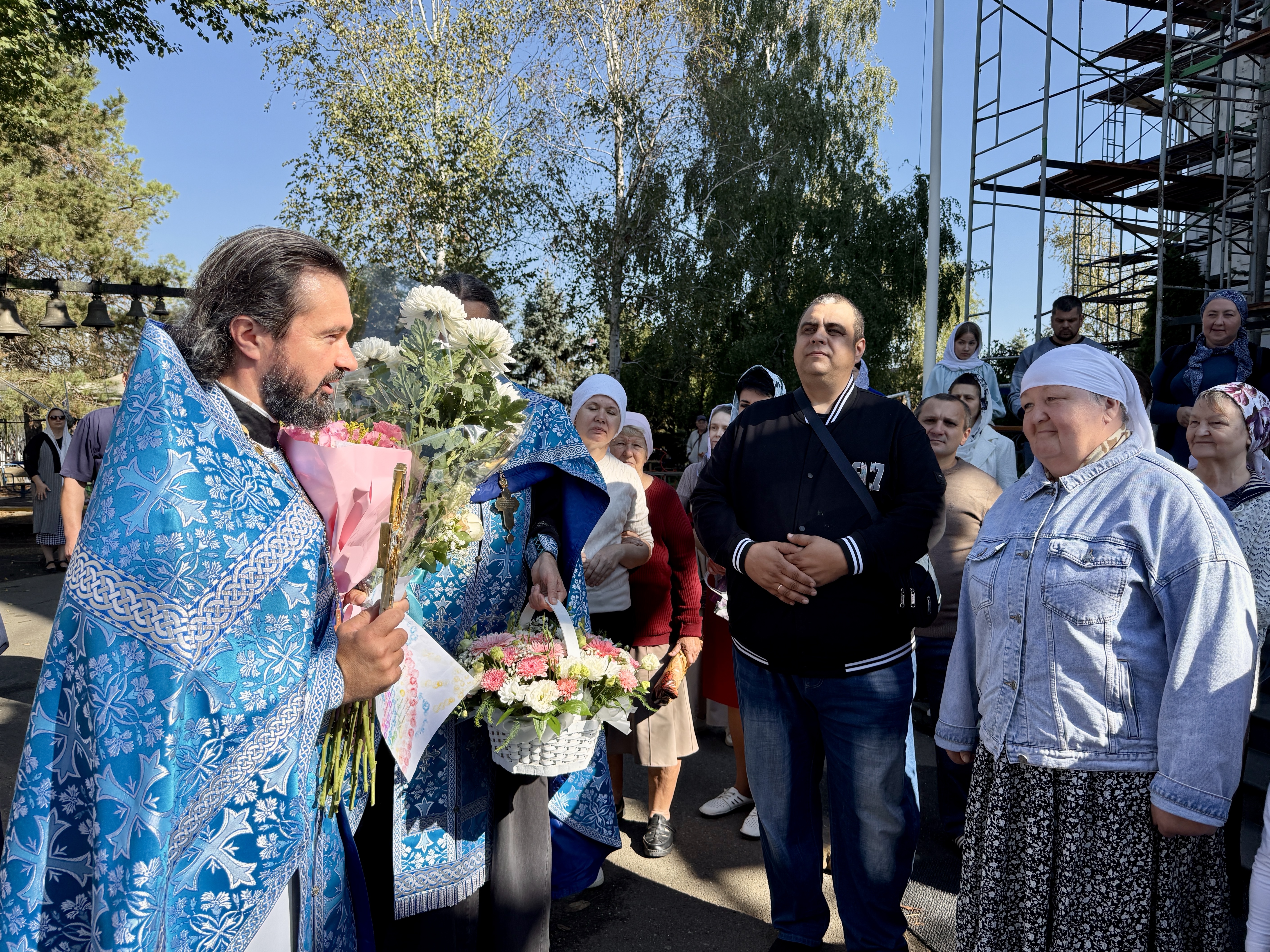 Затем настоятель храма отец Павел поздравил с юбилеем нашу старшую просфорницу Ирину Анатольевну Козлюк, преподнеся ей корзину с цветами как знак уважения и благодарности за её труд. В ответ, прихожане и родители детей из Воскресной школы с сердечным теплом поздравили отца Павла с его днём рождения, выражая ему свою признательность за его труд и заботу о приходе.
