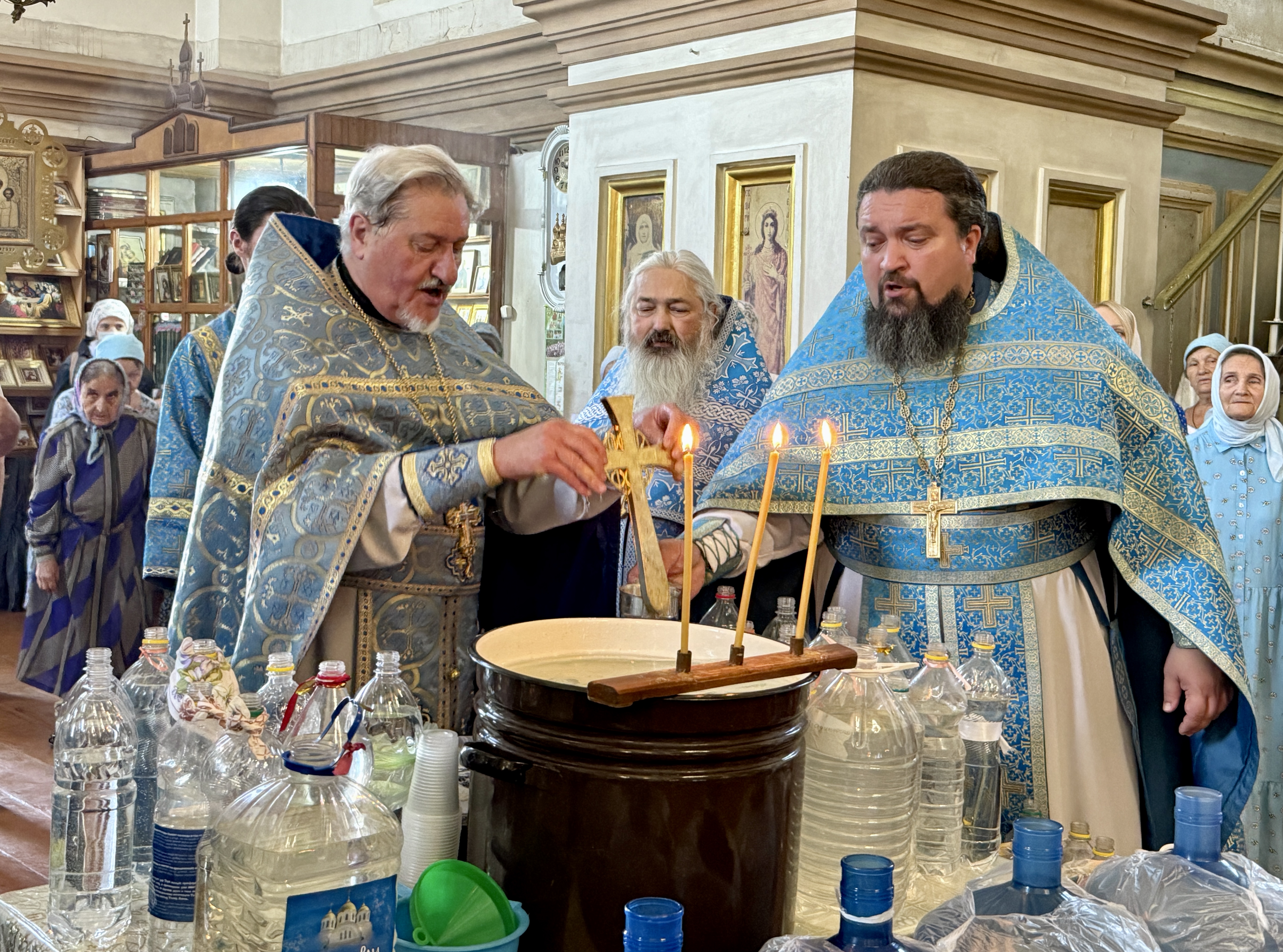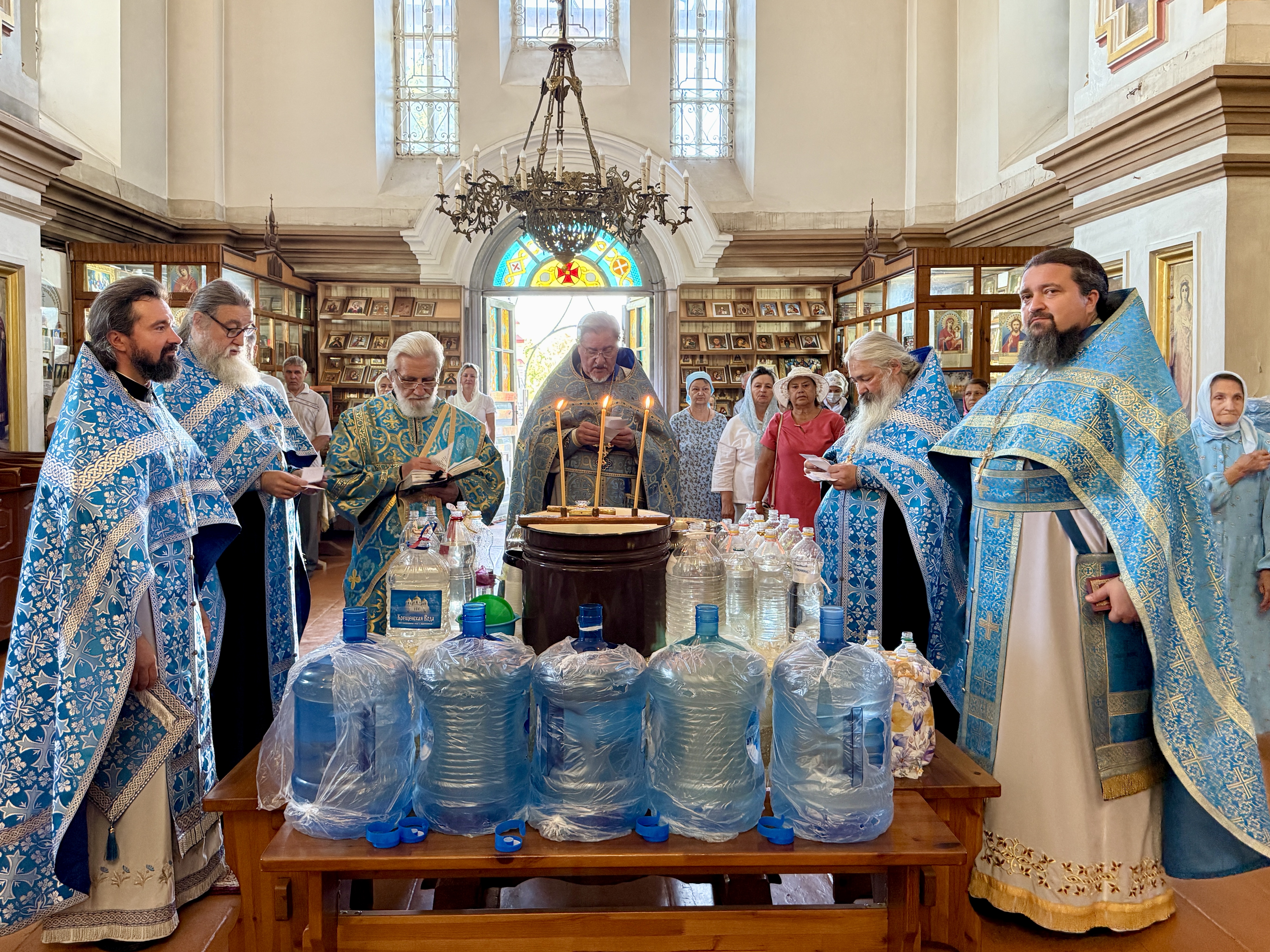 В этот день в храм пришло множество верующих, чтобы помолиться, причаститься Святых Христовых Таин, встретить праздник и наполнить свои сосуды крещенской водой.