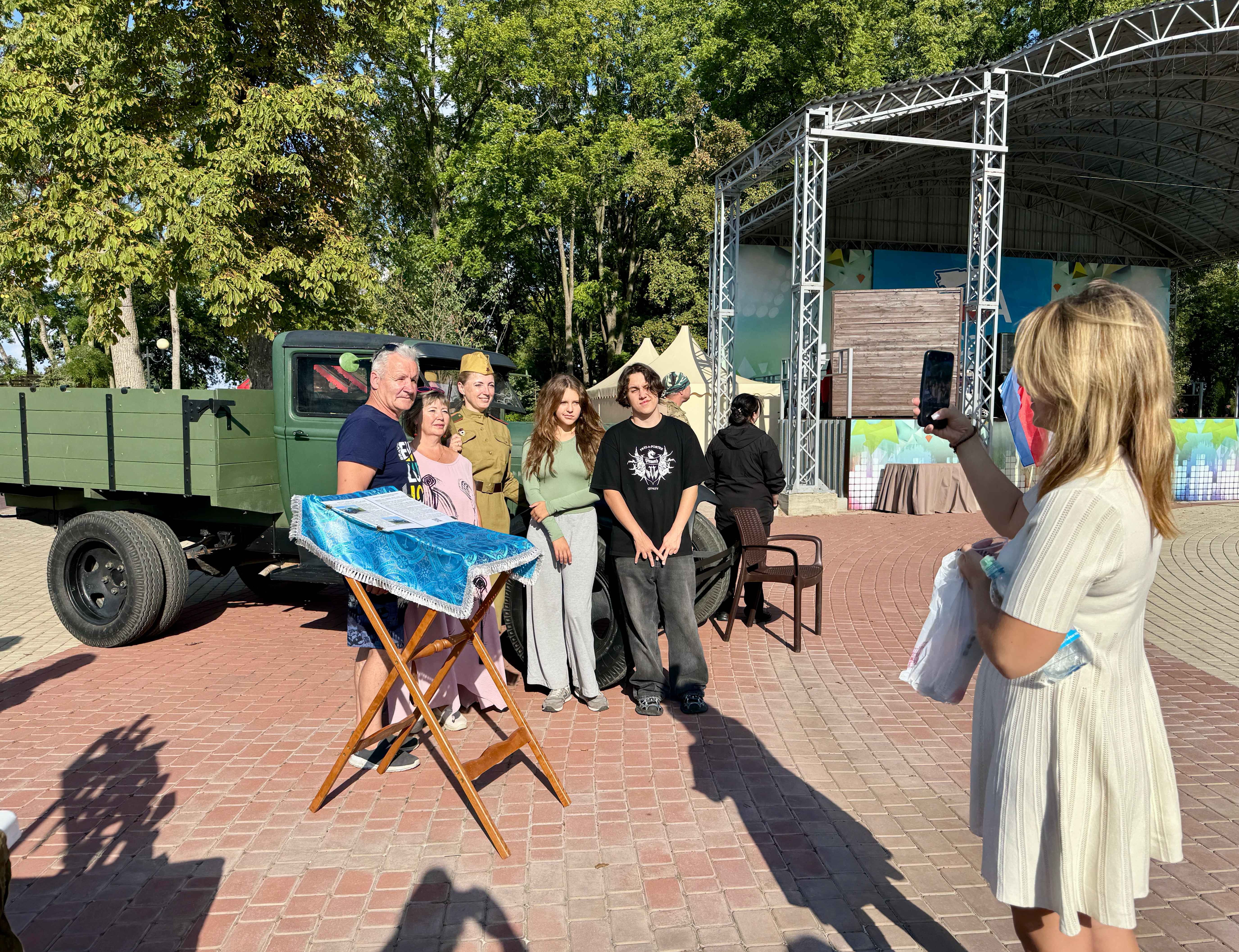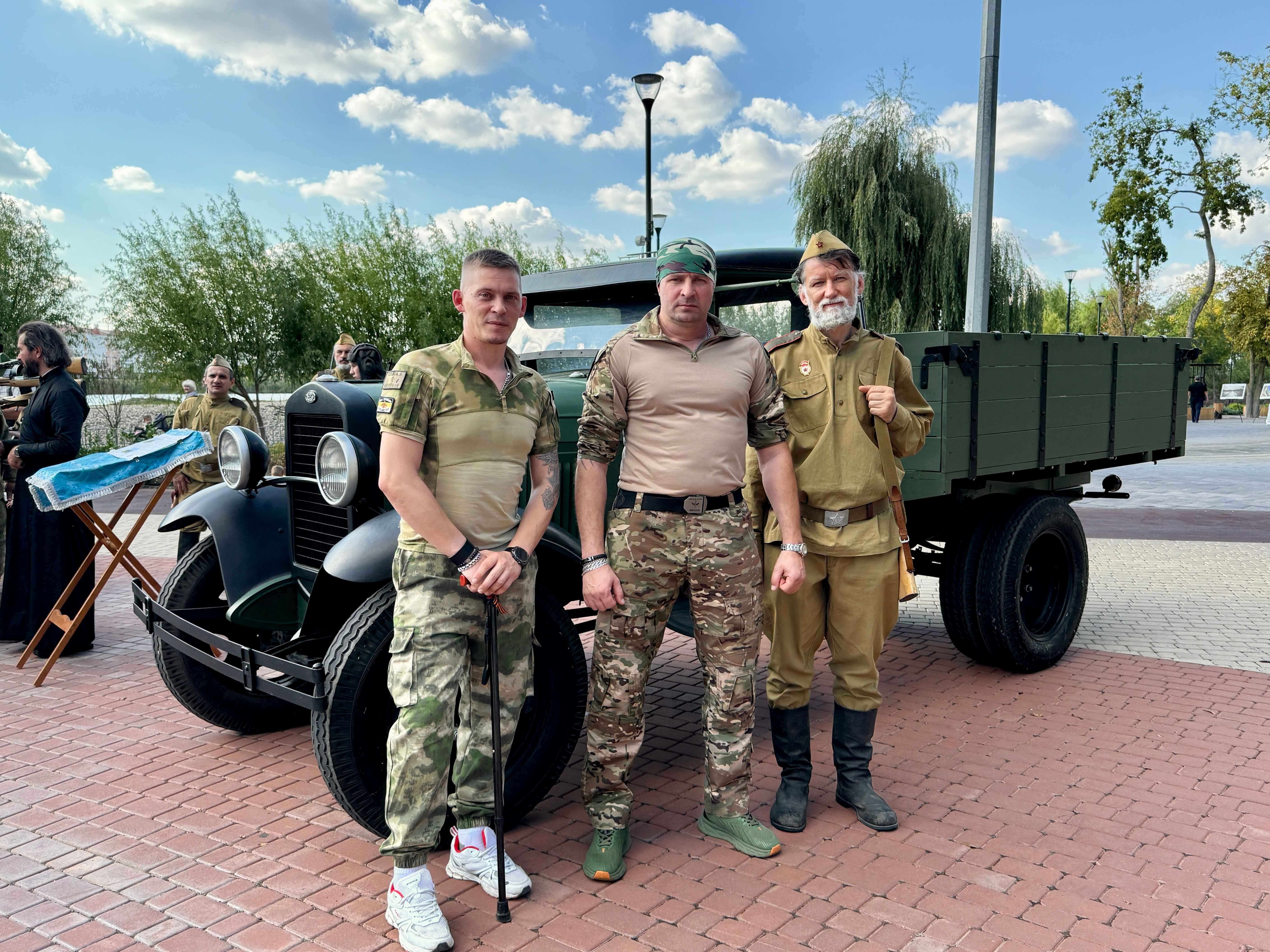 21 сентября в Комсомольском парке станицы Динской прошло трогательное мероприятие, посвящённое участникам специальной военной операции и убиенным на поле брани, под названием «Тихая вода». Настоятель храма Вознесения Господня, иерей Павел Максимец, вместе с прихожанами, одетыми в солдатскую форму, принял участие - привёз грузовик военных лет ГАЗ-АА, или, как его ещё называют, полуторка. Множество гостей с радостью фотографировались рядом с этим историческим автомобилем и «солдатиками».