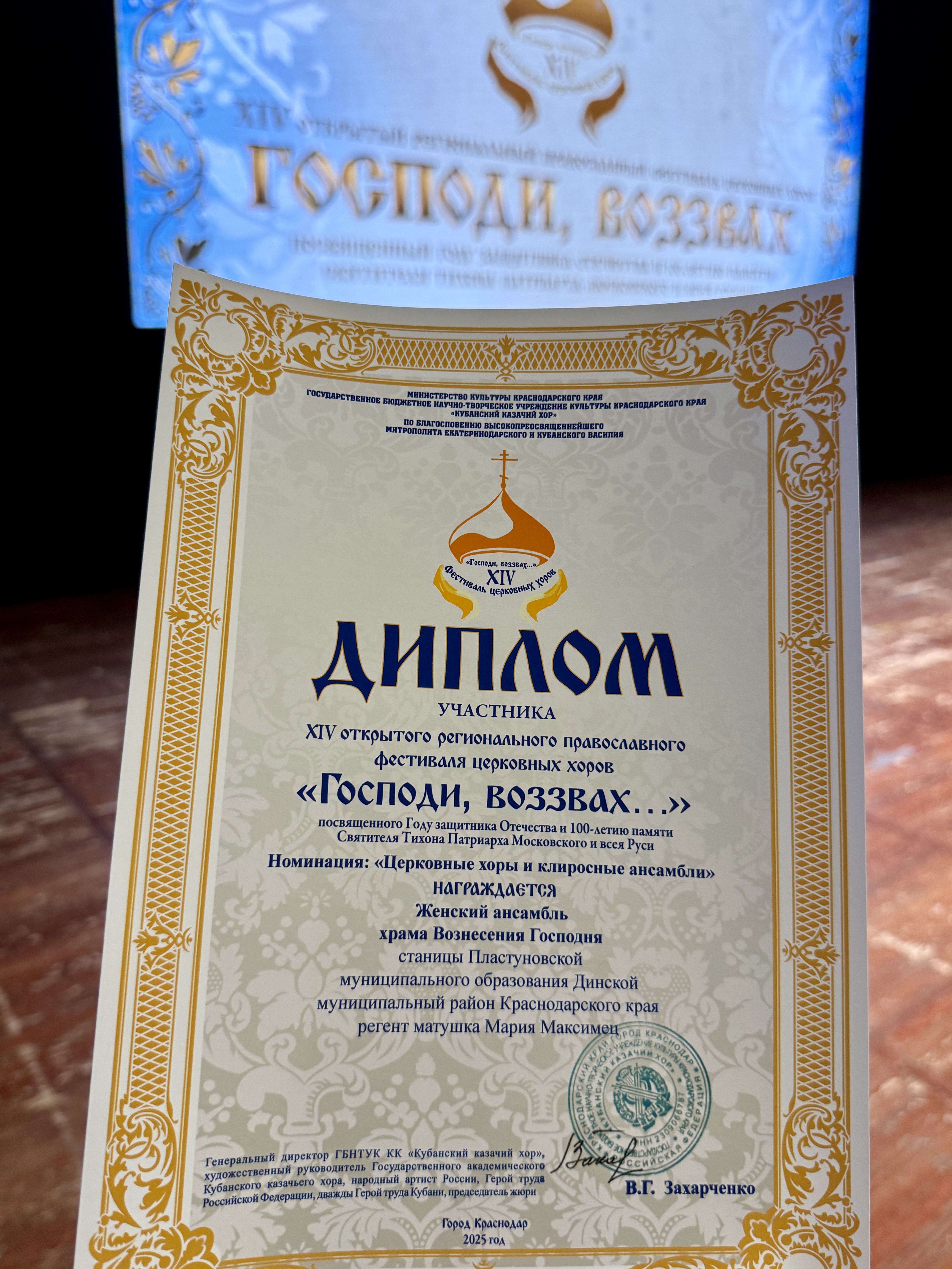 По завершении выступления каждому коллективу были вручены дипломы лауреатов фестиваля и памятная икона Святителя Тихона, Патриарха Московского и всея России.