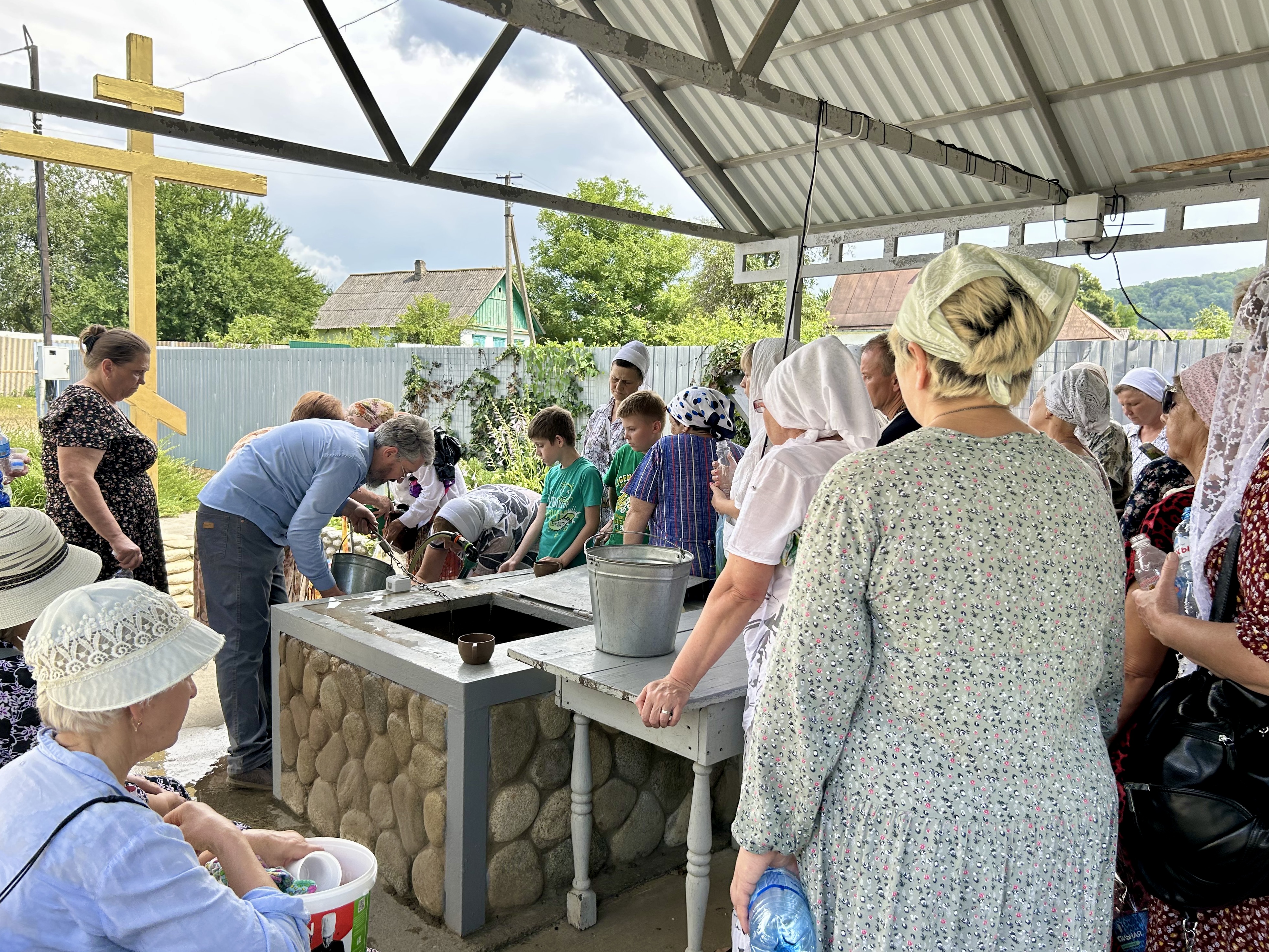 После богослужения желающие погрузиться отправились на Усадьбу «Фамилия», где была организована купель. Настоятель храма, иерей Павел Максимец, пропев тропарь праздника, освятил иордань, наполнив атмосферу особой торжественностью. Затем желающие начали погружаться в воду — среди них были дети, а также паломники, приехавшие из г. Анапы в храм Вознесения Господня для участия в богослужении. Батюшка с вниманием и заботой поддерживал каждого, кто окунался, произнося ободряющие слова. Вода, освящённая молитвой, стала символом обновления.