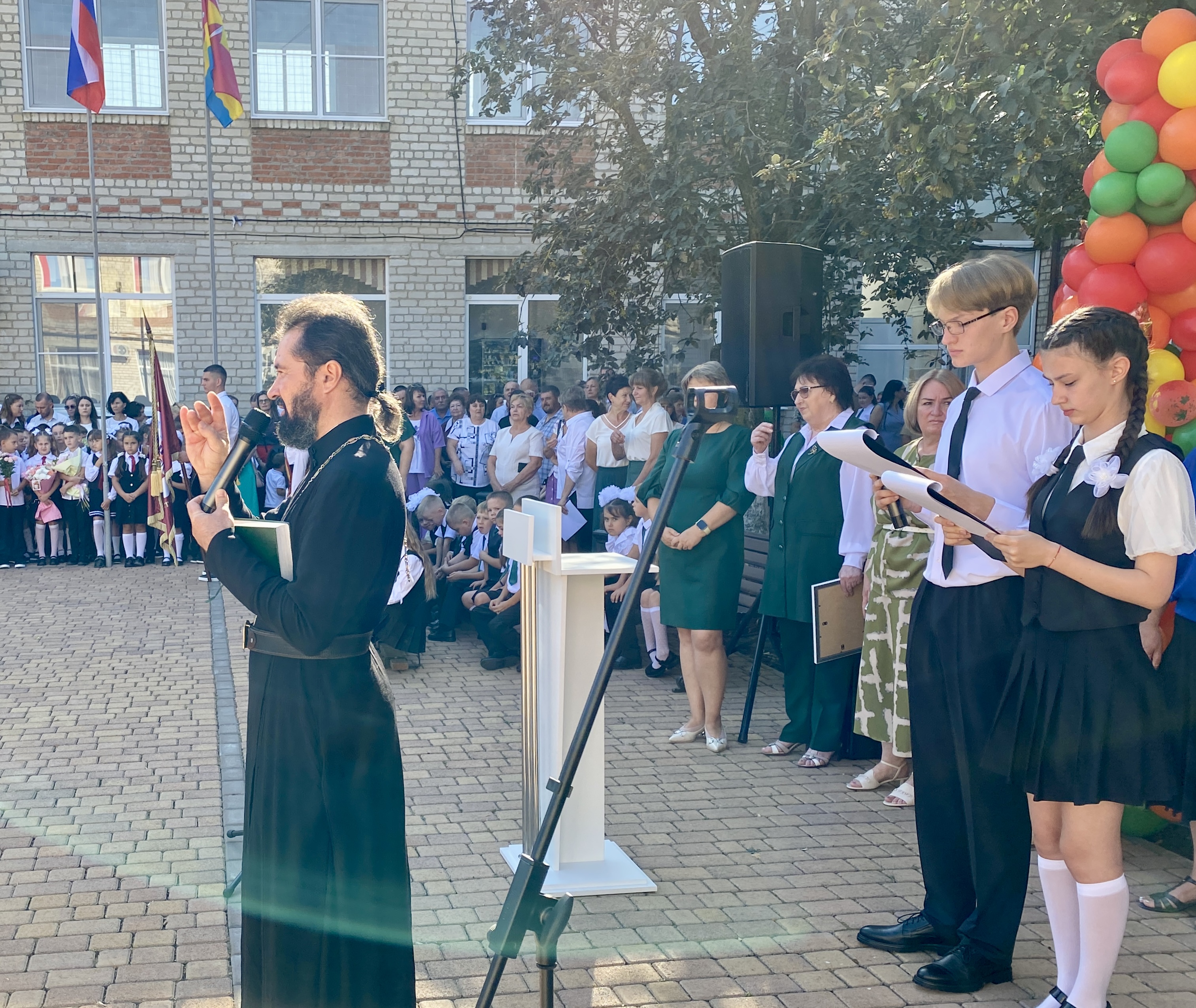 🎗️ 9 декабря 2024, в день Героев Отечества, штатный священник храма Вознесения Господня ст. Пластуновской протоиерей Игорь Медведев принял участие в торжественной линейке в школе № 7 имени Н.И. Кондратенко. Это событие было посвящено открытию парты, установленной в честь погибших героев специальной военной операции.