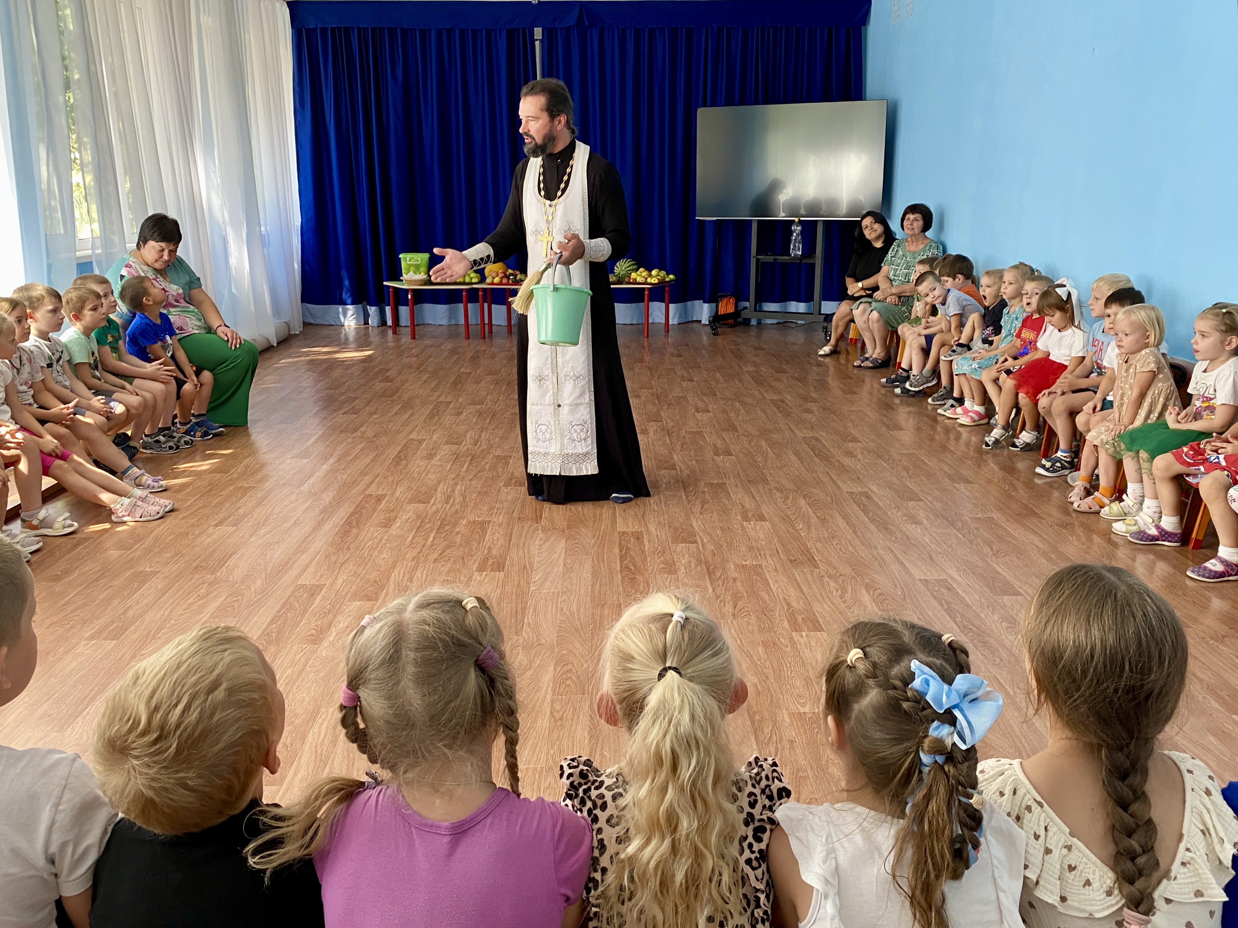 Ребят и их педагогов встретил настоятель храма, иерей Павел Максимец. Батюшка, обращаясь к детям, напомнил им о значении храма как Божиего дома и места молитвы. Отец Павел рассказал и показал ребятам, как правильно креститься, и объяснил, для чего это нужно делать.