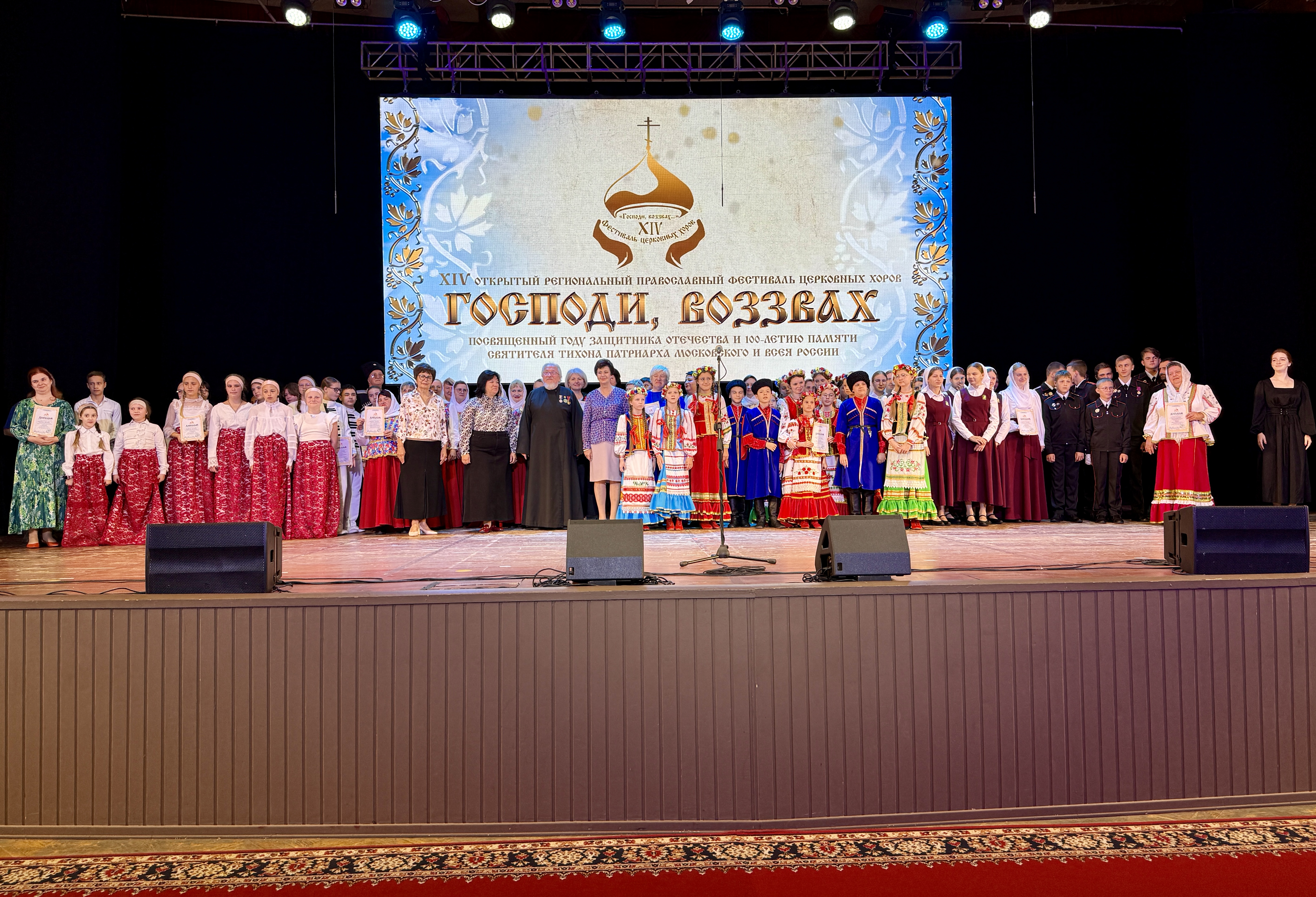 2 октября в концертном зале Кубанского казачьего хора города Краснодара состоялся заключительный концерт лауреатов XIV открытого регионального православного фестиваля церковных хоров «Господи, воззвах…». Фестиваль был посвящён году Защитника Отечества и 100-летию памяти Святителя Тихона, Патриарха Московского и всея России.